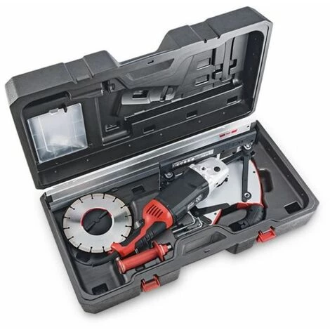 Koffer inklusive Deckelfach für Kleinteile, Ablagemöglichkeit für Diamanttrennscheibe, Seitenhandgriff und 800 mm Führungsschiene