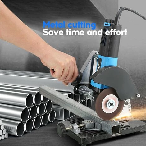 Dieses Produkt ist eine Halterung und muss mit einem Winkelschleifer verwendet werden. Der Winkelschleifer verwendet verschiedene Trennscheiben, die Aluminium, Edelstahl, Eisen, PVC, Holz und andere Materialien schneiden können